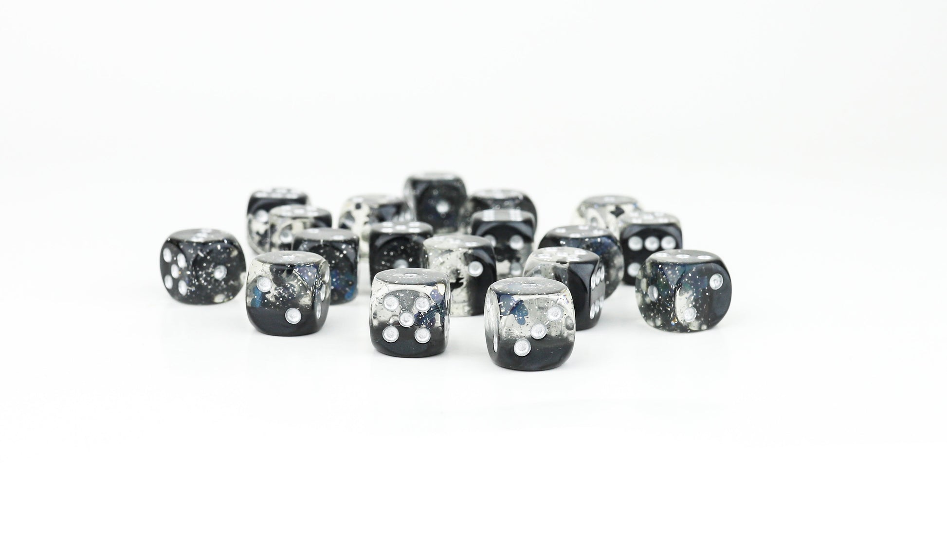 Add a touch of magic and a whole lot of sparkle to your next game night with this enchanting Sirius Dice 12mm Clubs D6 Dice Set! These aren't just any dice; this set includes eighteen (18) D6 dice, each crafted from a mesmerizing blend of black and sparkling clear resin, making them truly eye-catching. But the real charm lies within: each die mysteriously holds a miniature three-leaf clover, ready to bring a dash of good fortune to your rolls! These 12mm dice feature the "Clubs" style, perfect for representing that lucky vibe. Whether you're adventuring in a dungeon, navigating a starship, or just looking to add a unique flair to your favorite board games, these black and clear beauties are sure to be a delightful addition to your collection.