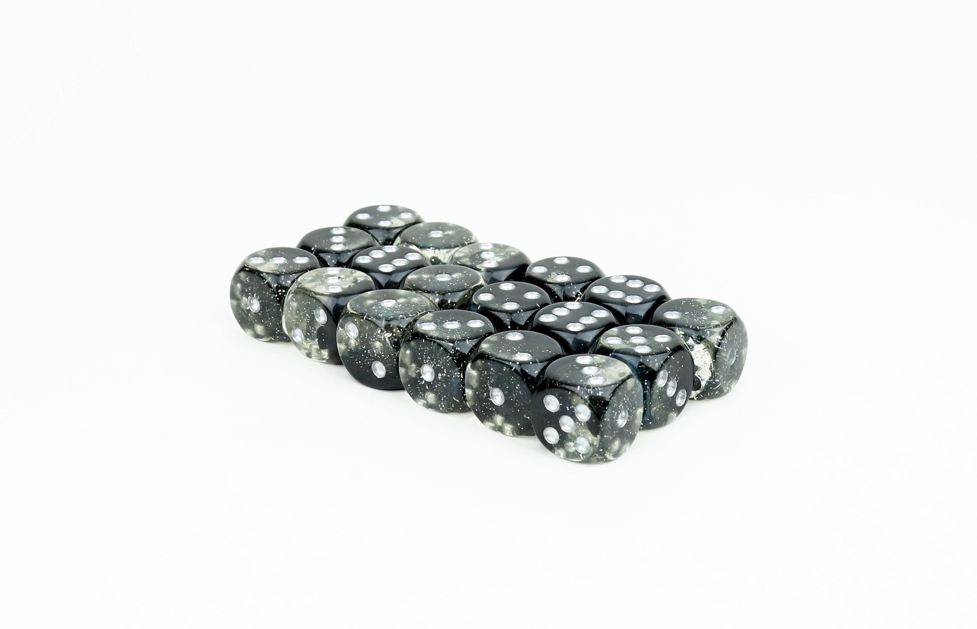 Get ready to deal out some style at your next game night! This Sirius Dice 12mm Spades D6 Dice Set is a sleek and striking addition to any collection. You'll get eighteen (18) D6 dice, each crafted from mesmerizing layers of glittering clear and deep black resin.
