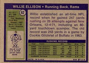 1972 Topps Willie Ellison RC #62 Los Angeles Rams