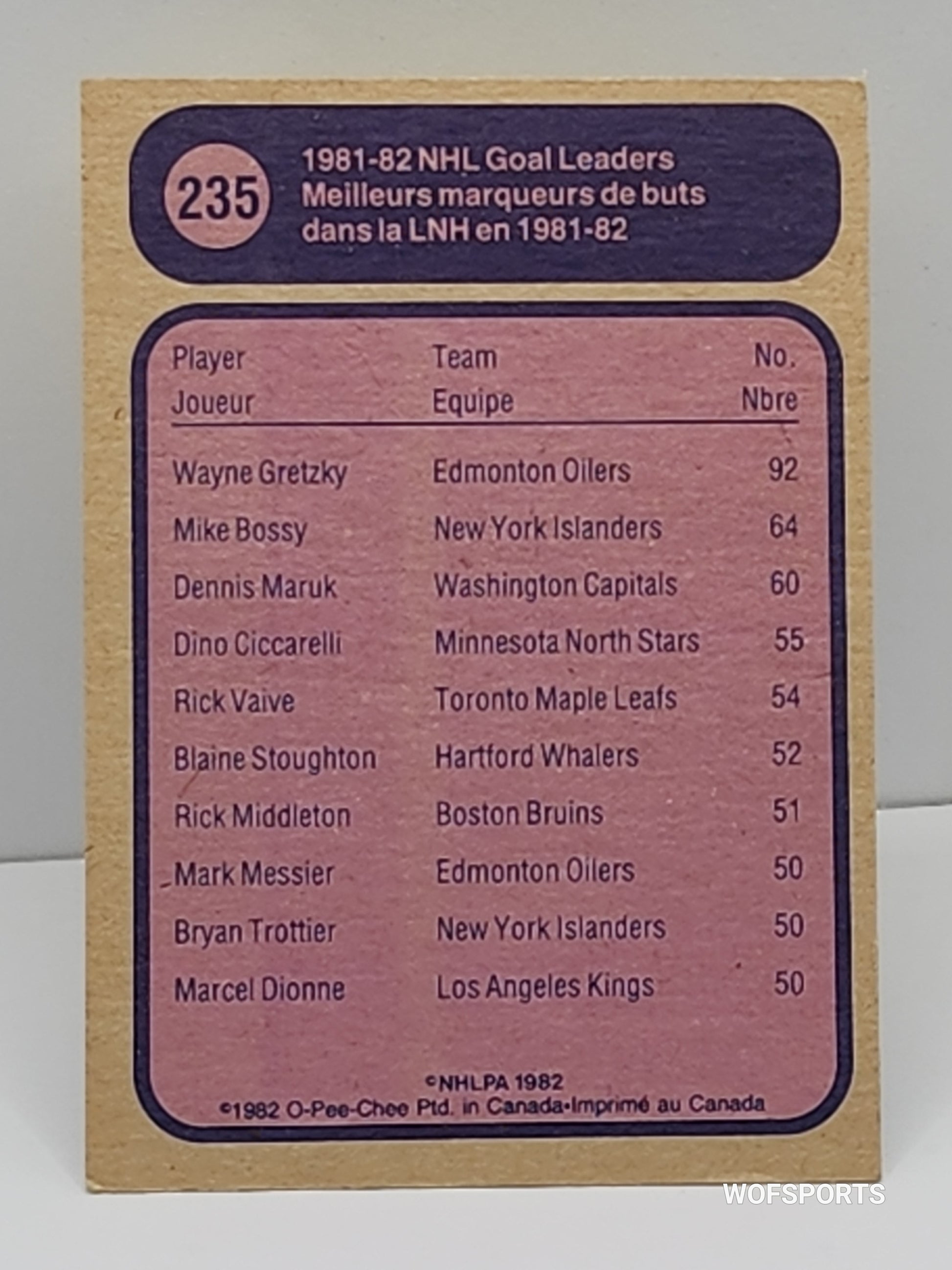 This 1982 O-Pee-Chee #235 Wayne Gretzky League Leaders card showcases the talent and success of the legendary hockey player. With a limited edition release, this card is a must-have for any collector or fan. Includes statistics of Gretzky's impressive performance as a league leader.o