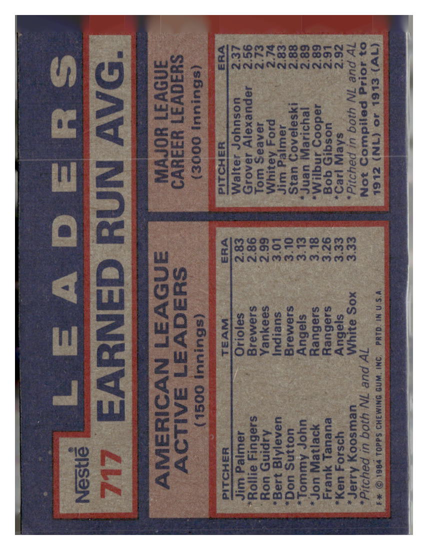 1984 Nestle AL ACTIVE CAREER ERA LEADERS - Jim Palmer Rollie Fingers Ron Guidry