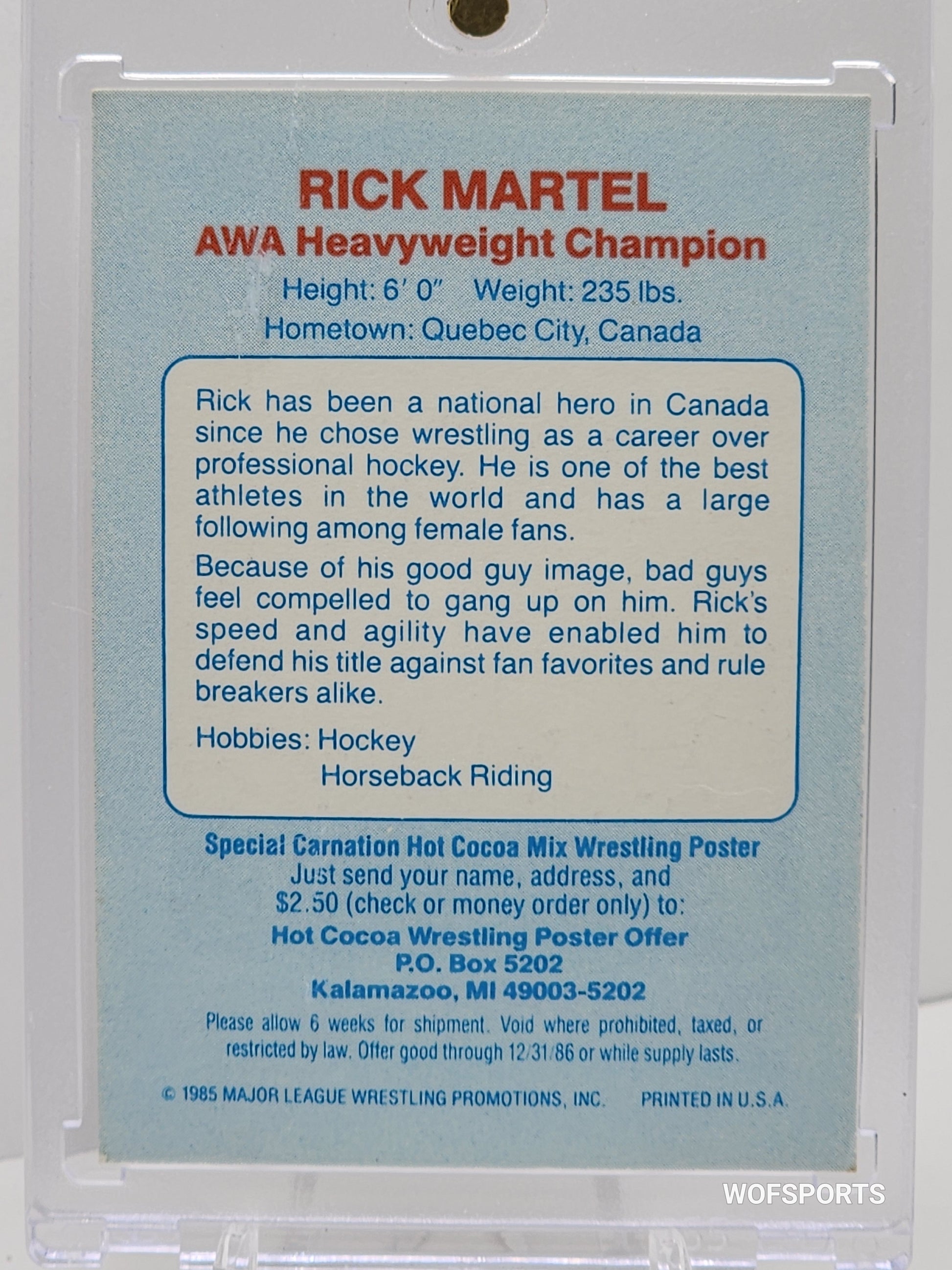 1985 Major League Wresting Cards Rick Martel 1986 AWA Heavyweight Champion