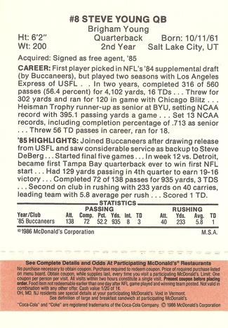 1986 McDonald's Bryce Young RC #8 Tampa Bay Buccaneers
