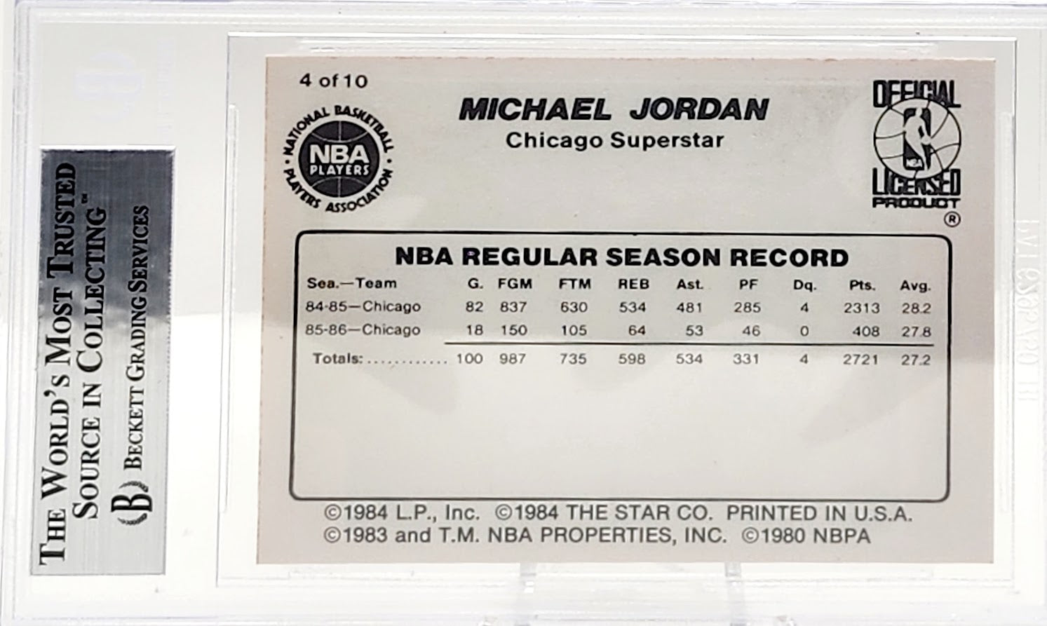 1986 Michael Jordan Star Card #4 Pro Stats BGS 9 High Subs 9.5-9–9.5-8.5 ROOKIE
