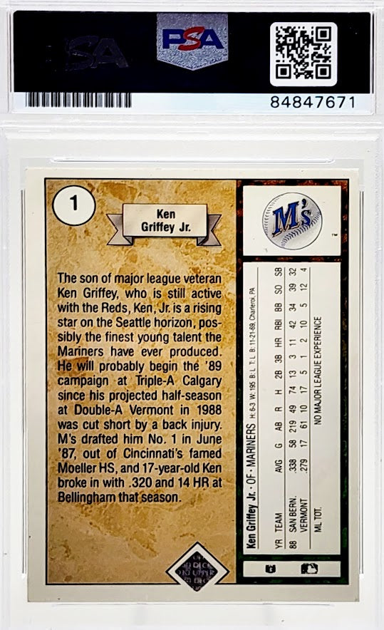 1989 UPPER DECK STAR ROOKIE #1 KEN GRIFFEY JR. RC HOF PSA 9 DNA AUTO GRADE