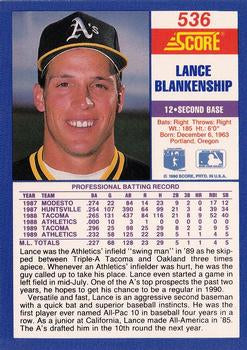 1990 Score Lance Blankenship #536 Oakland Athletics