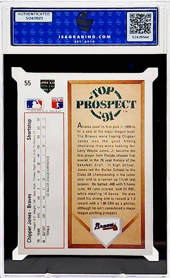 1991 Upper Deck Chipper Jones Rookie Card #55 Graded ISA Gem 10