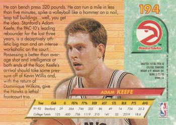 1992-93 Fleer Ultra Adam Keefe DPK, RC #194 Atlanta Hawks