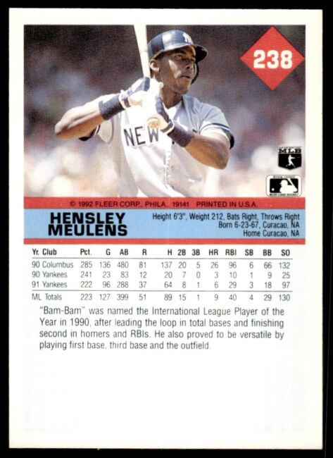 1992 Fleer Hensley Meulens #238 New York Yankees