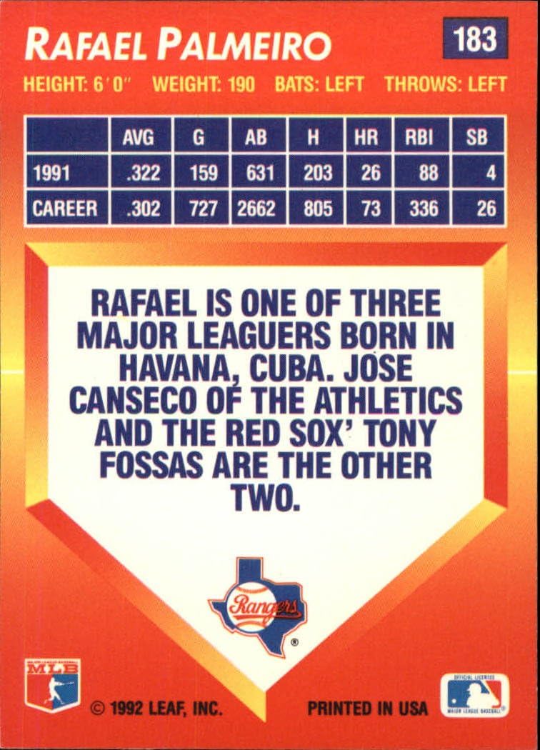 1992 Leaf Rafael Palmeiro #183 Texas Rangers