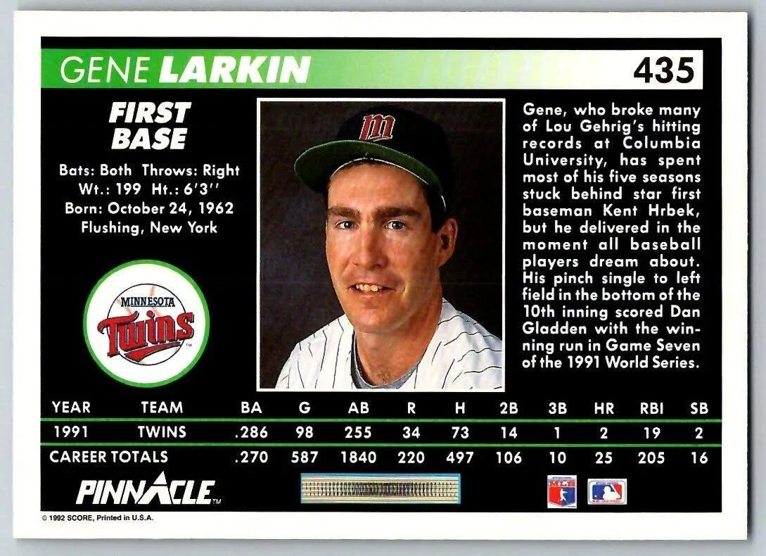 1992 Score Pinnacle Gene Larkin #435 Minnesota Twins