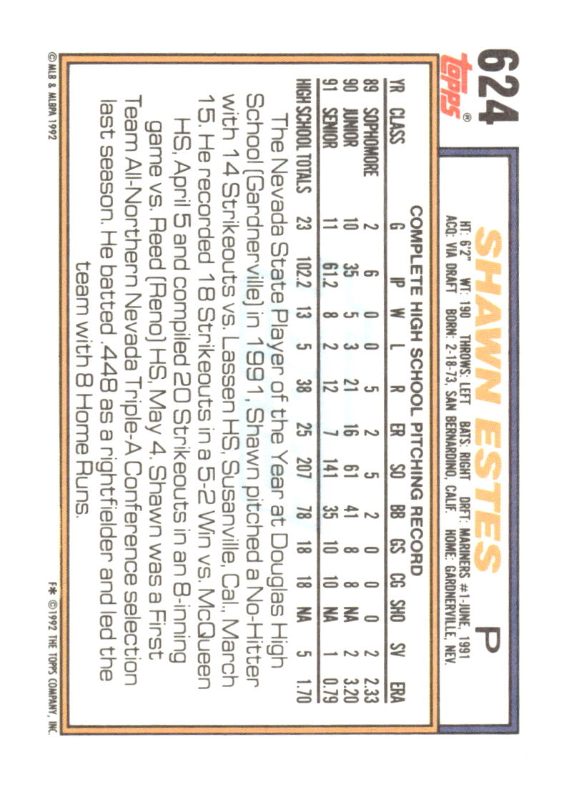 1992 Topps #624 Shawn Estes