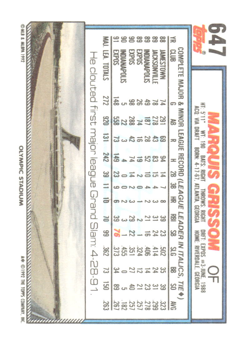 In 1992 Marquis Grissom played for the Montreal Expos.