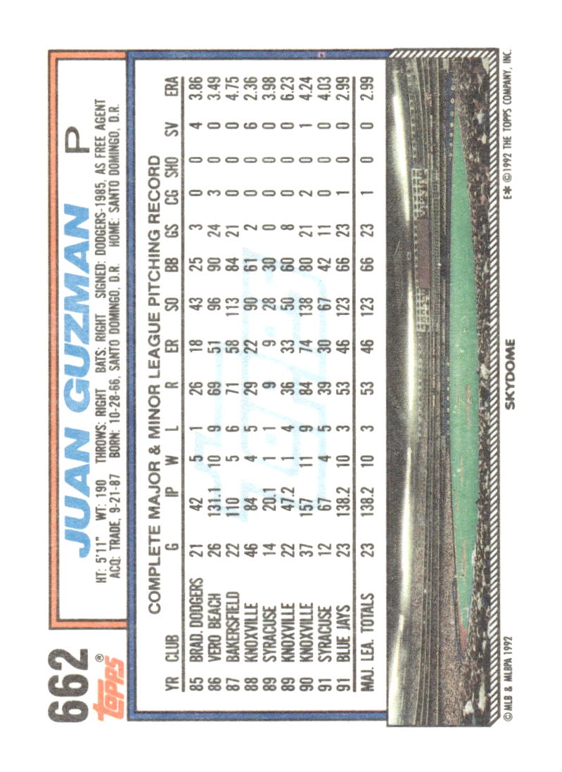 This is a nice example of a 1992 Topps #662 Juan Guzman