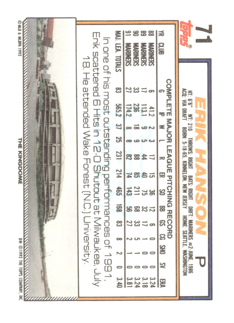 In 1992 Erik Hanson played for the Seattle Mariners.
