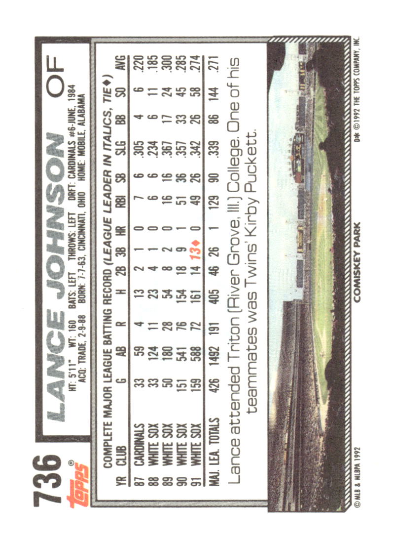 In 1992 Lance Johnson played for the Chicago White Sox.