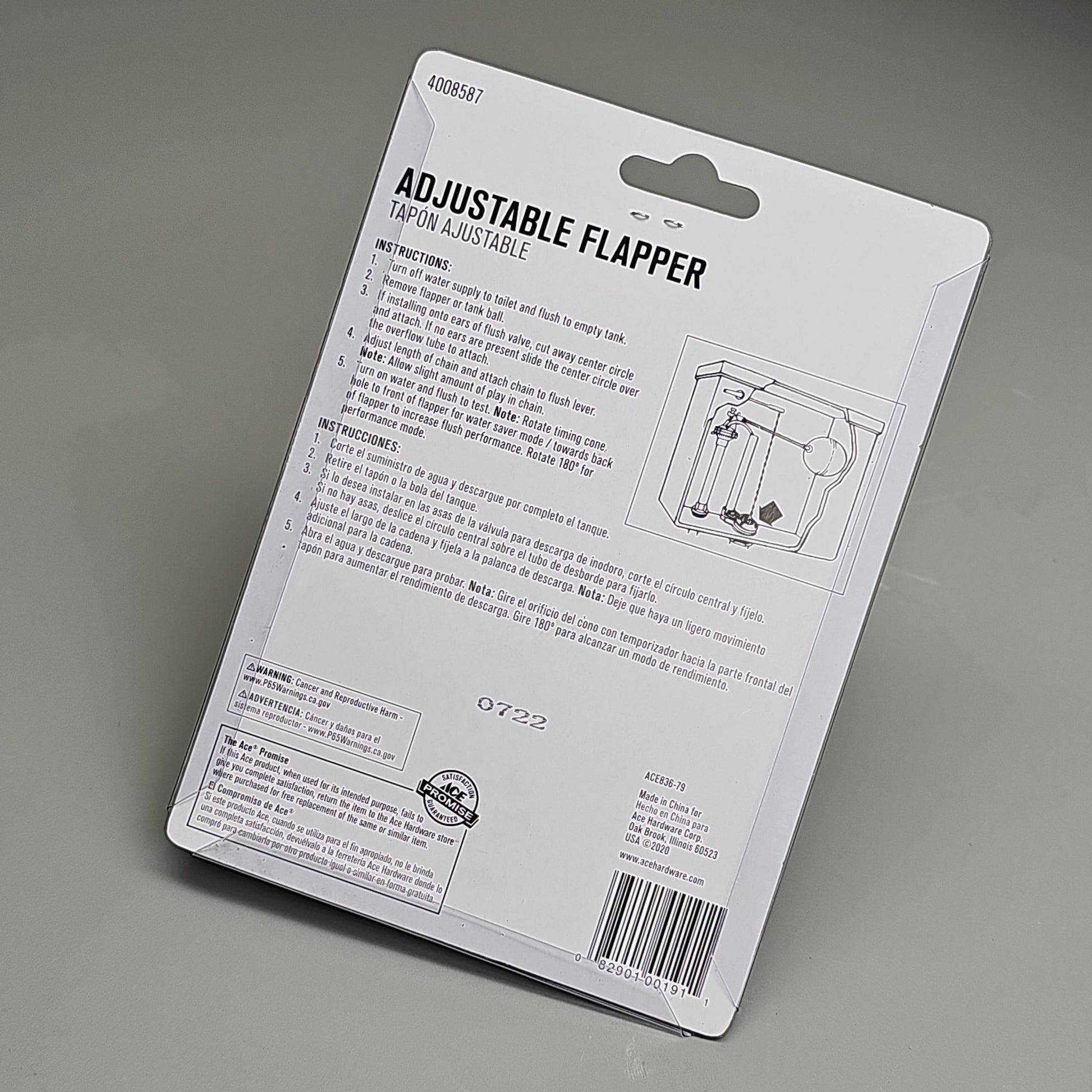 ACE Adjustable Flapper for Toilet Plastic 2" 4-Pk ACE836-79 4008587 (New)