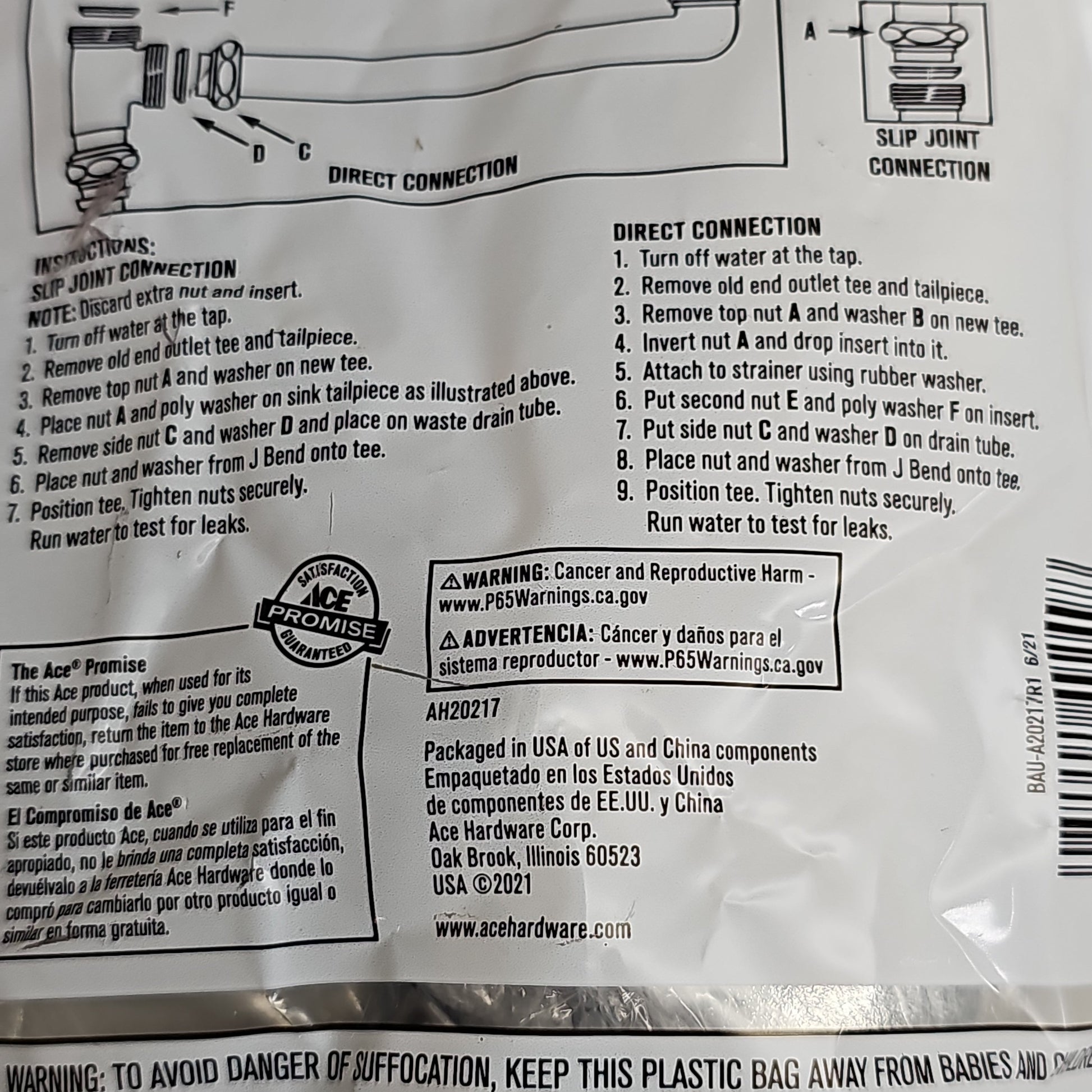 The ACE End Outlet Tee & Tailpiece is an essential component for plumbing installations and repairs. Designed with precision and durability in mind, each set of 5 ensures you have an ample supply for your project needs. Crafted to fit 1.5" pipes, these end outlet tee and tailpieces are compatible with various plumbing systems, providing versatility and ease of installation.