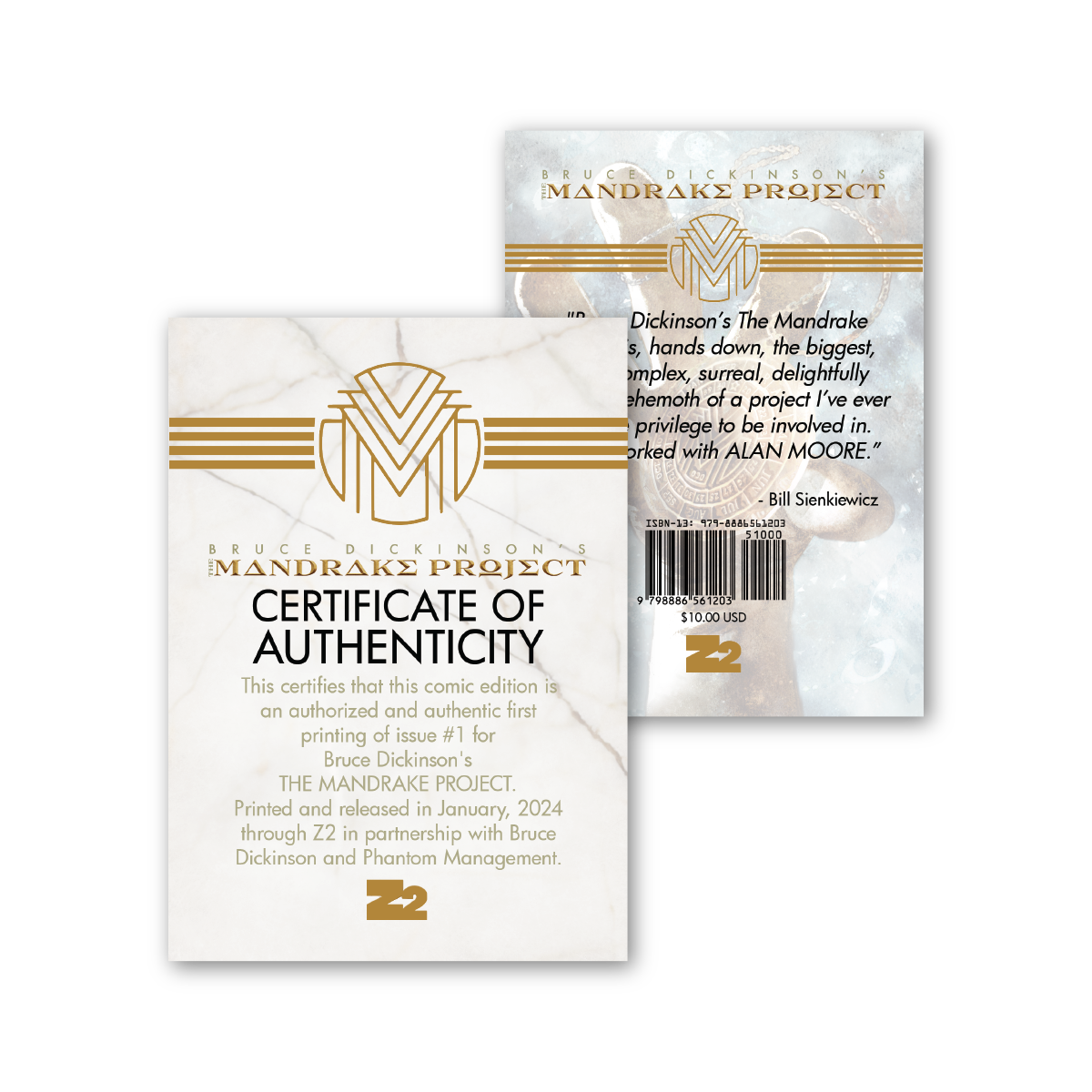 Over the last decade, Iron Maiden vocalist Bruce Dickinson has crafted the story behind THE MANDRAKE PROJECT, a 12-issue quarterly comic series accompanying his upcoming solo album of the same name. Now, accompanied by the creative team of writer Tony Lee and artist Staz Johnson, Bruce is releasing the saga that captures the century-spanning generational war between the forces of science and mysticism for control of immortality through Z2 Comics. With covers by Bill Sienkiewicz, this is an epic tale that you won’t want to miss