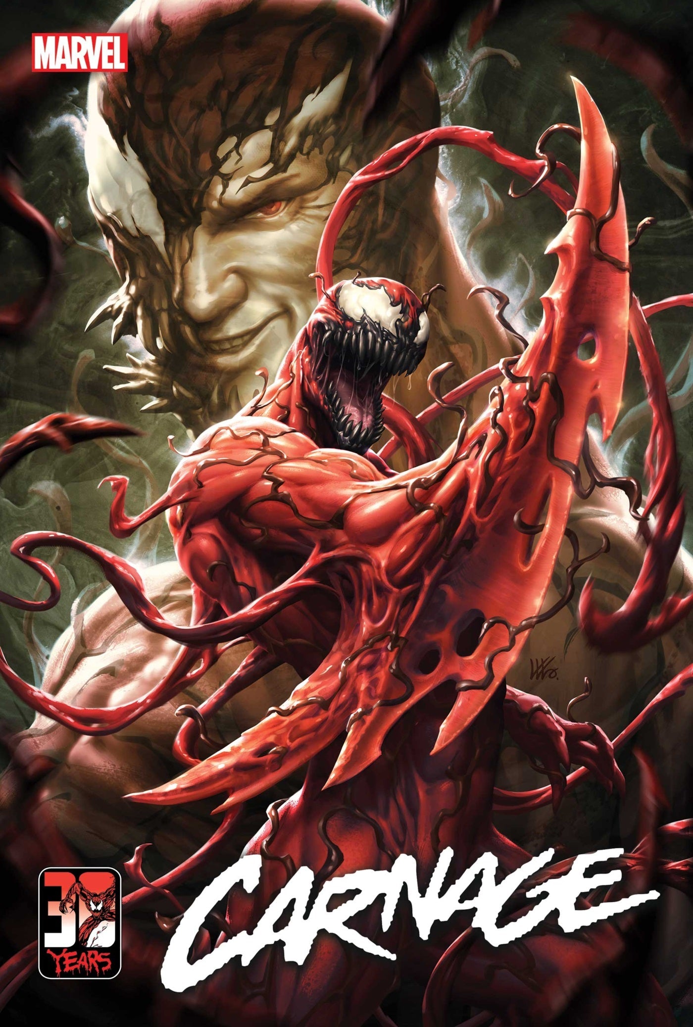 A KILLER CELEBRATION! Cletus Kasady is the most notorious serial killer in the Marvel Universe - and it's been thirty years since his first introduction! Thirty years of monsters- mayhem and murder - AND YOU HAVEN'T SEEN ANYTHING YET! With an awesome assembly of creators- this issue will HAVE IT ALL! A look back on Carnage's past- his present and- just maybe- the first hints you'll ever get of his visceral and violent FUTURE!