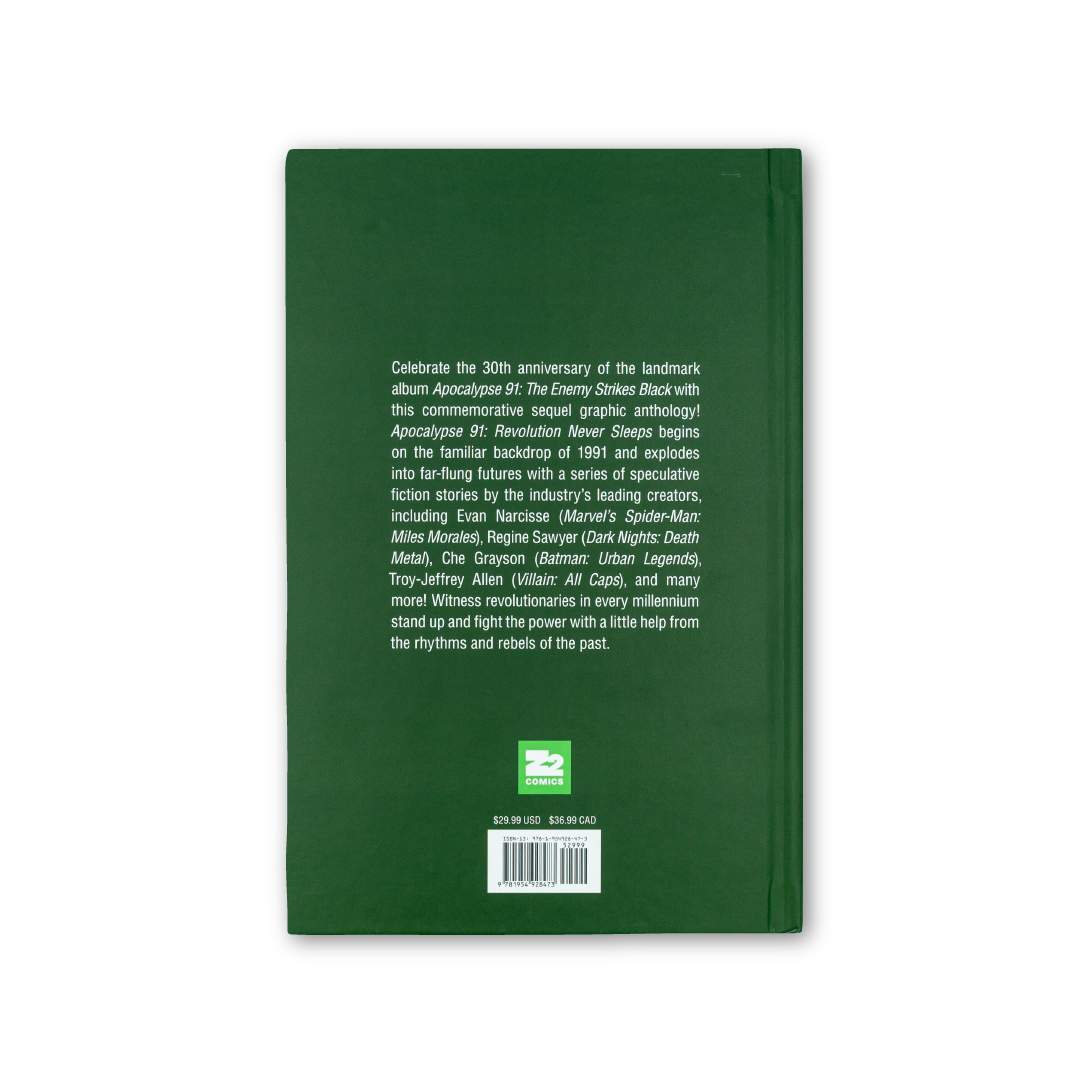 Celebrate the 30th anniversary of the landmark album Apocalypse 91: The Enemy Strikes Black with this commemorative sequel graphic anthology! Apocalypse 91: Revolution Never Sleeps begins on the familiar backdrop of 1991 and explodes into far-flung futures with a series of speculative fiction stories by the industry's leading creators, including Evan Narcisse (Marvel's Spider-Man: Miles Morales), Regine Sawyer (Dark Nights: Death Metal), Che Grayson (Batman: Urban Legends), Troy-Jeffrey Allen (Villain: All Caps), and many more! Witness revolutionaries in every millennium stand up and fight the power with a little help from the rhythms and rebels of the past.