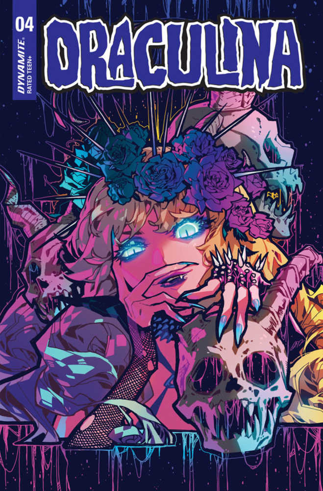 When the demon Belial tips off the jilted lover of their arranged marriage, Draculina finds herself hunted by the interdimensional "Reality Merchant" Hesiod, who punishes Draculina by altering reality to reverse the fortunes of Draculina and her young alt-self Katie, granting the power (and wings!) of the Vampiri to the preteen while leaving Draculina confronted by an unwanted and fragile humanity, and at the mercy of her enemies!