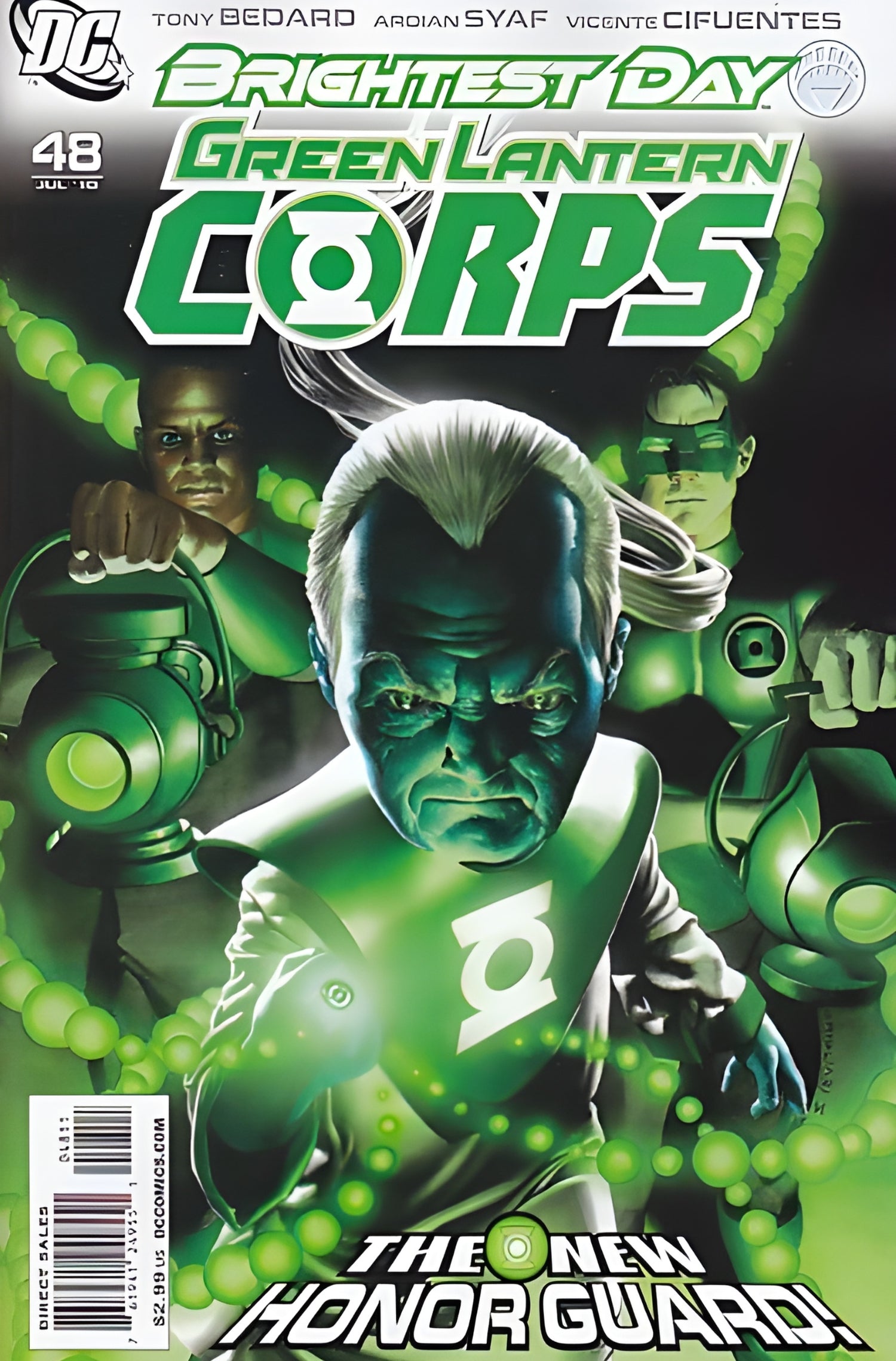 BRIGHTEST DAY shines its light on a new "Emerald Dawn"! In the wake of BLACKEST NIGHT, the Green Lantern Corps Honor Guard has expanded to include John Stewart and former Guardian Ganthet. Can the new immortal Green Lantern and the legendary Marine help Kyle Rayner suppress the growing threat within their ranks? Featuring up-and-coming artist Ibraim Roberson (X Necrosha)!