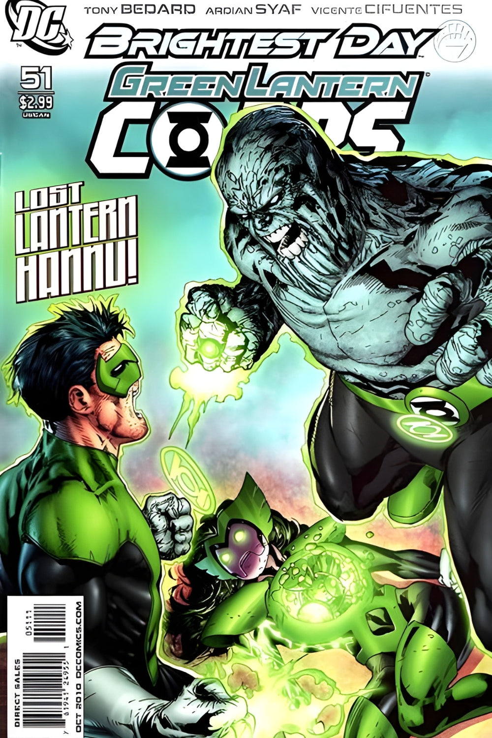 BRIGHTEST DAY continues as Hannu, the Green Lantern who does not want to use his power ring, is the only hope to rescue Kyle Rayner, John Stewart and Ganthet. Does he stand a chance against an entire planet controlled by Cyborg Superman?