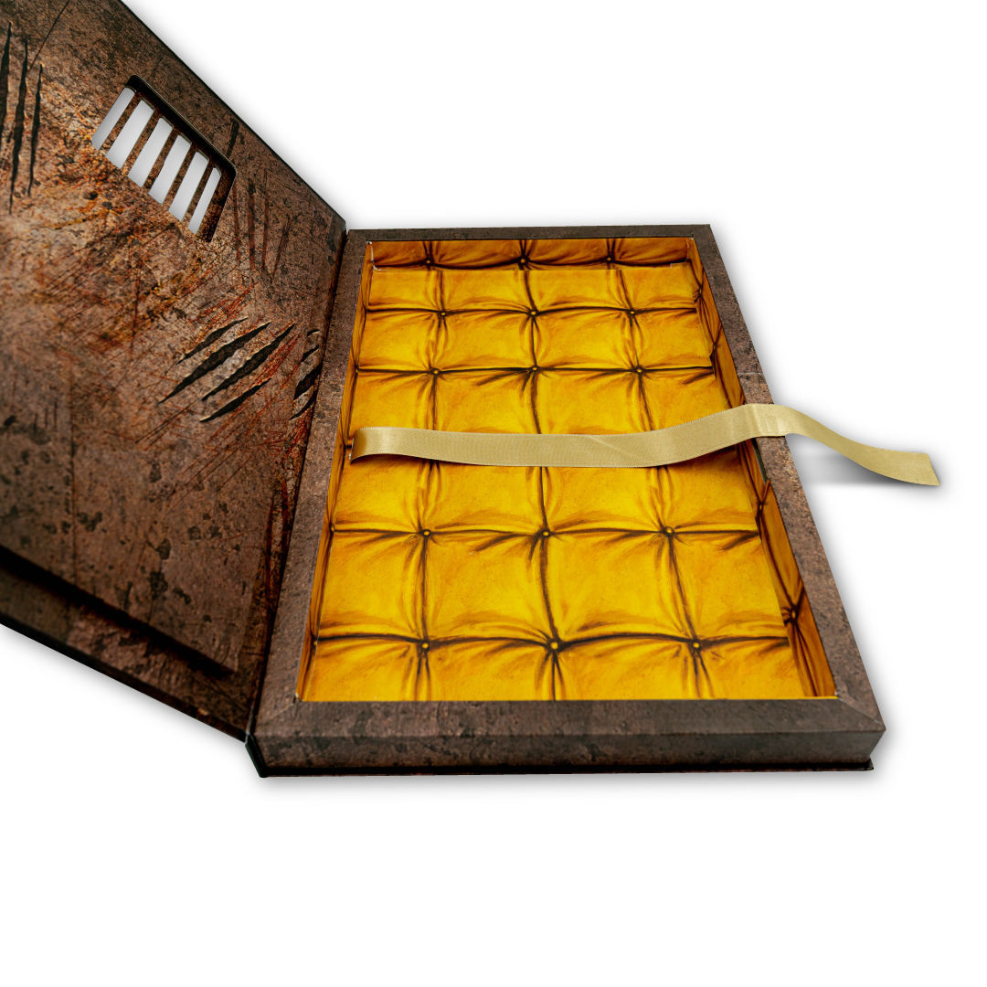 - Piece of Mind asylum clamshell box with locking cell door action custom slipcase