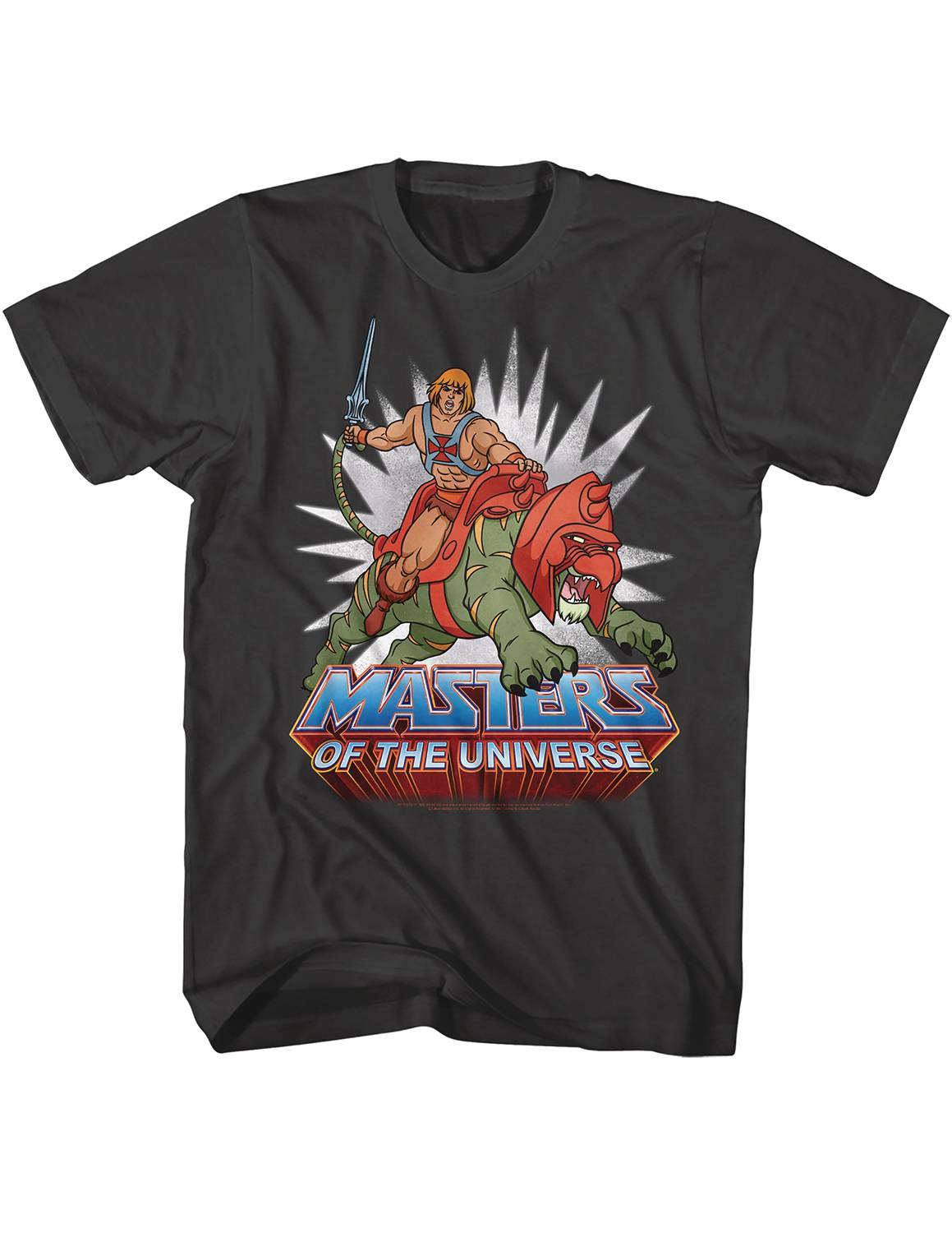Feel the power of Grayskull and charge into battle astride Battle Cat with this He-Man t-shirt!