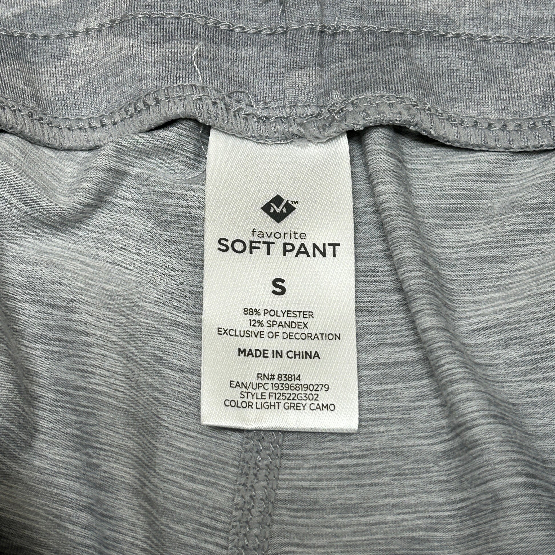 MEMBERS MARK Favorite Straight Leg Soft Pant Light Grey Camo Size Small (New)