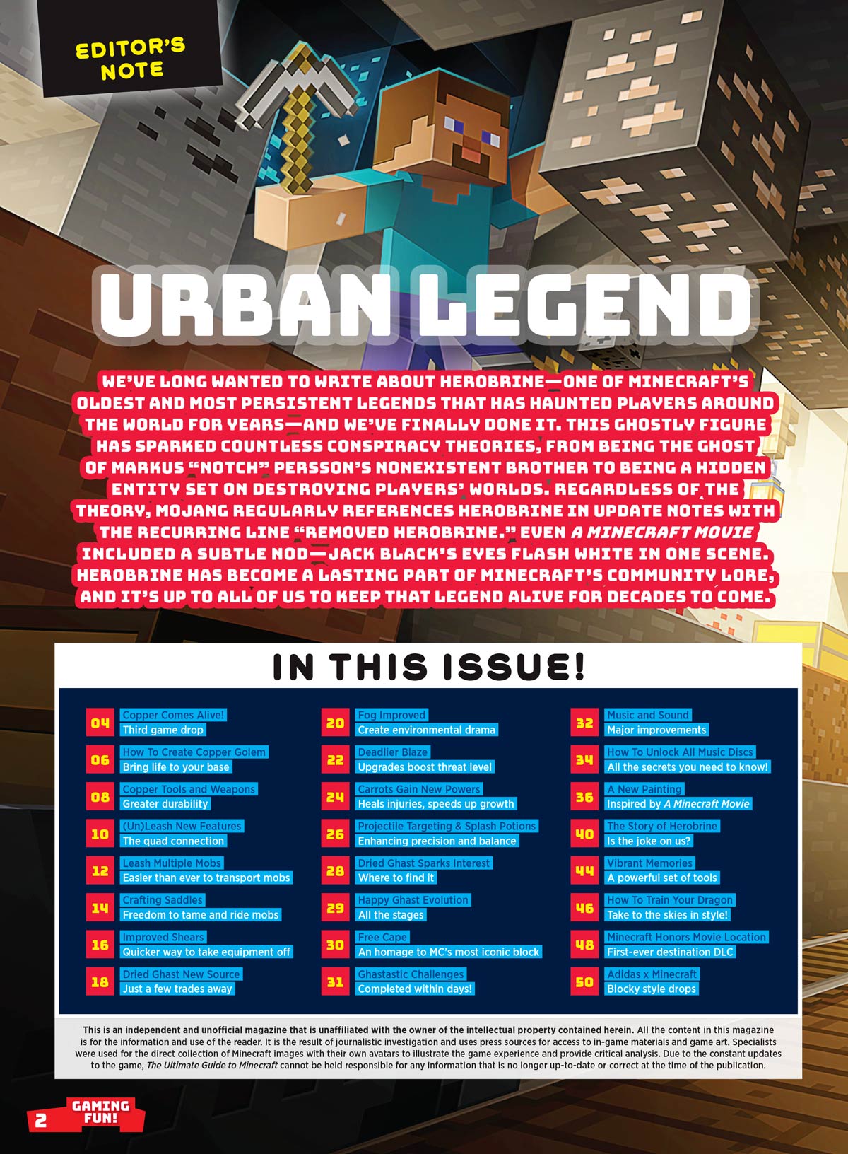 Discover the ultimate resource for Minecraft enthusiasts with "The Ultimate Guide to Minecraft," featuring exclusive posters, tips on leashing multiple mobs, and everything essential to enhance your gameplay experience. Dive into the thrilling world of Happy Ghast evolution and see how copper comes alive, while also learning the secrets to training your own dragon. Unlock all movie discs and explore a wealth of content designed to elevate your Minecraft adventure to new heights!