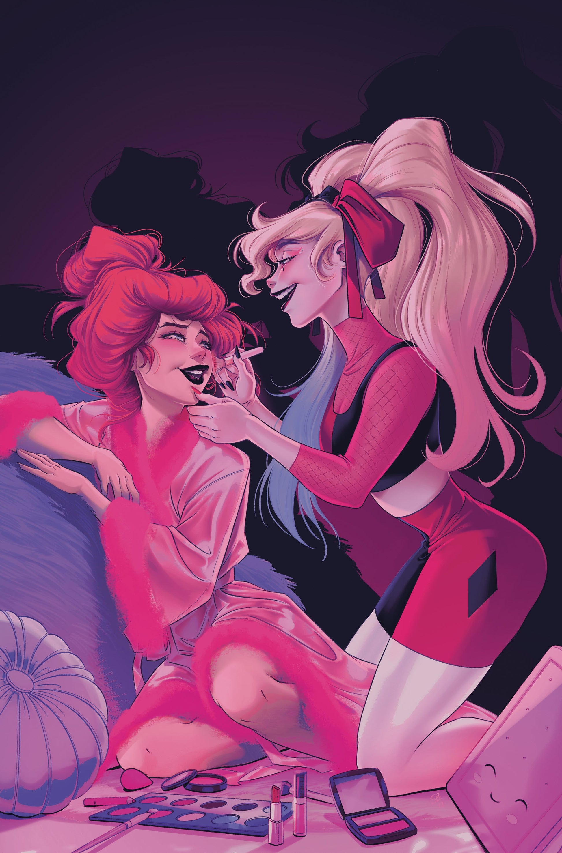 IT'S THE ISSUE YOU'VE ALL BEEN WAITING FOR! That's right! Ya girl Harley Quinn—doctor- fashionista- heroic criminal- criminally insane clown- and Poison Ivy's girlfriend—has arrived on the West Coast to spend some quality time with her number-one squeeze! What sort of wildly lascivious and lavishly ludicrous madcap mayhem will the DCU's favorite couple get up to? Featuring the return of series artist Marcio Takara and an assortment of utterly mouthwatering variant covers by some of the most delectable artists around- from iconic Harley Quinn artist Terry Dodson to incoming Harley Quinn artist Sweeney Boo- as well as Dan Mora- Rian Gonzales- and Mindy Lee! You won't want to miss a single bit of it—we guarantee it!