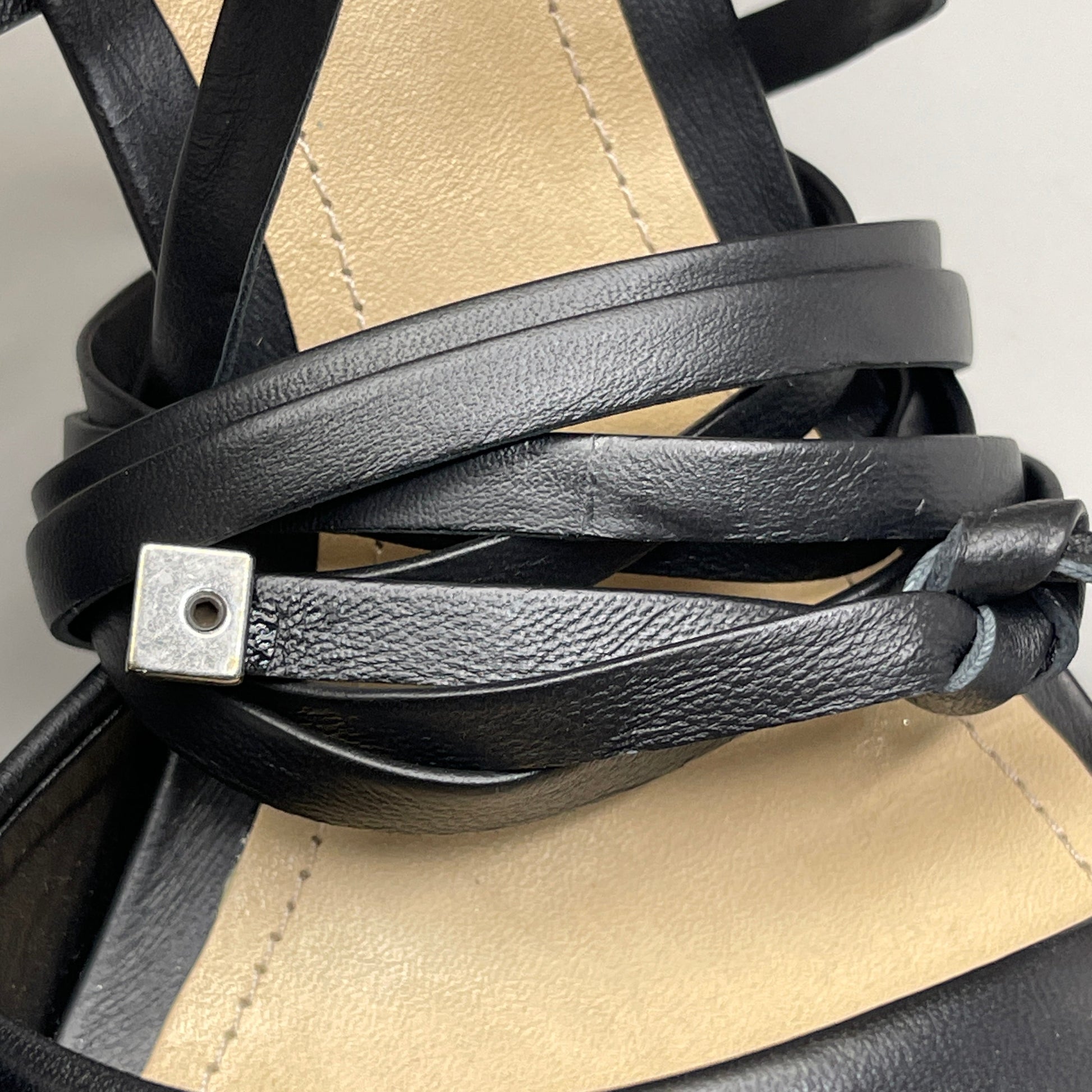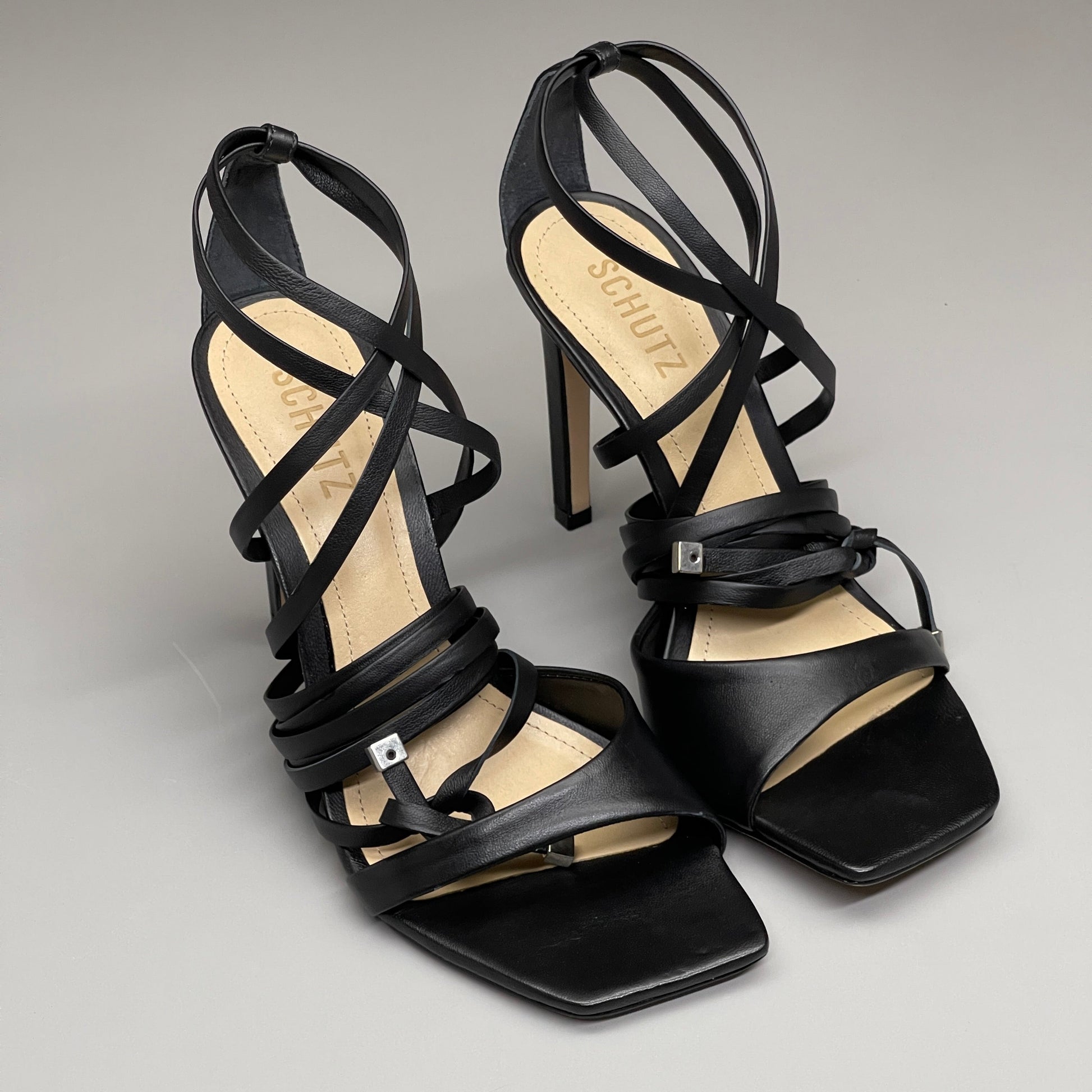SCHUTZ Bryce Ankle Tie Women's Leather High Heel Strappy Sandal Black Sz 6B (New)