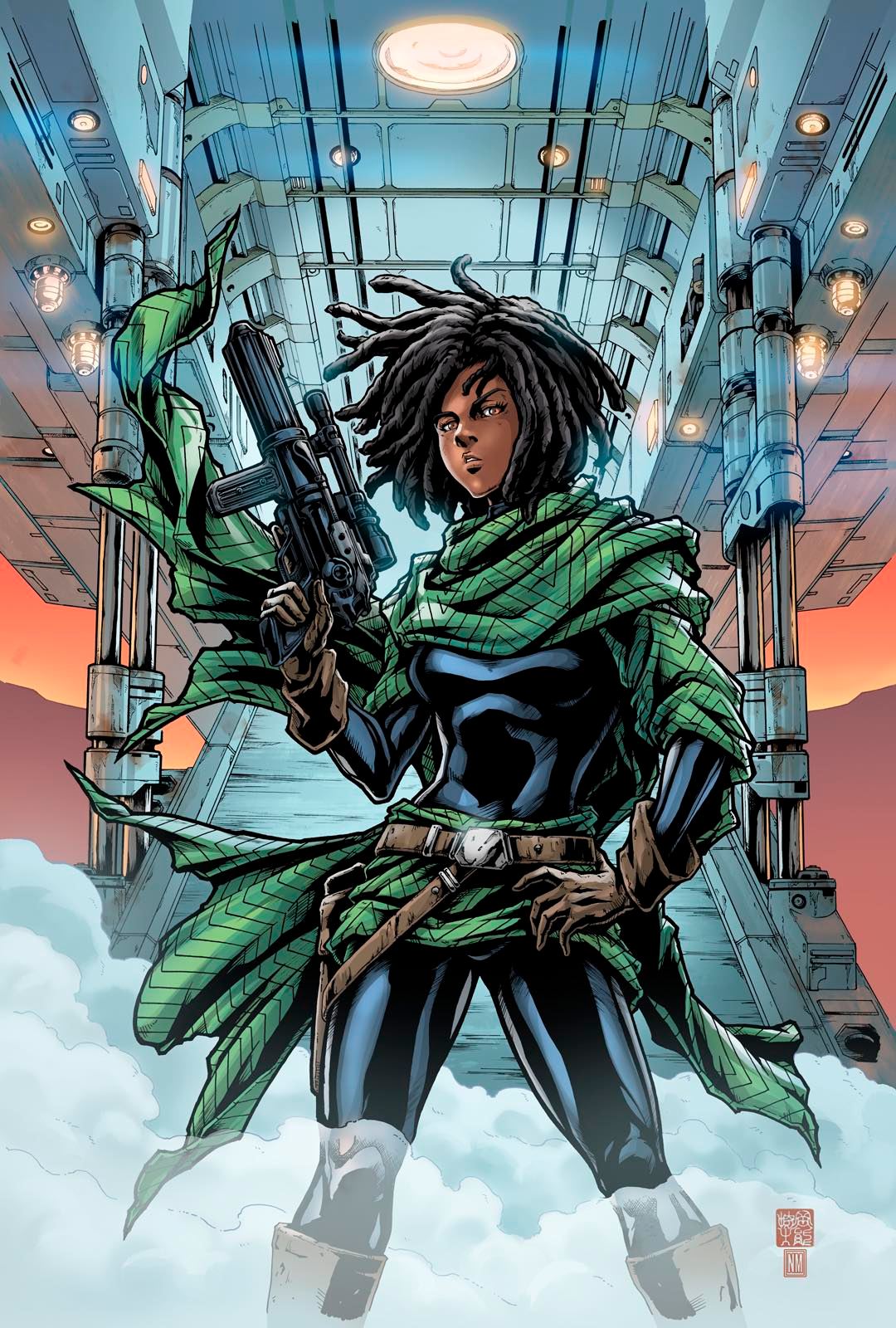 STARRING IN HER FIRST EVER SOLO SERIES! Fresh off of a string of disappointments, Sana Starros returns to her family's ancestral home for some downtime. But family time is far from relaxing for a scoundrel and her family of ne'er do wells, especially when Stormtroopers crash dinner… Watch as JUSTINA IRELAND and PERE PEREZ bring Sana Starros to new heights!
