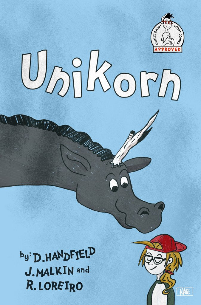 Scoot Imprint. Mae Everhart inherits an old horse from her long lost mother- only to discover a strange nub on the horse's forehead hidden beneath a fly bonnet. Searching for answers- Mae explores her mom's abandoned veterinary office and finds a secret book her mother hid just for her- its title... Unikorn Guide! Join Mae and Percy on a journey of healing in Unikorn. Enjoy the first issue of this NON-STOP! title followed by the entire story collected soon after in one volume.